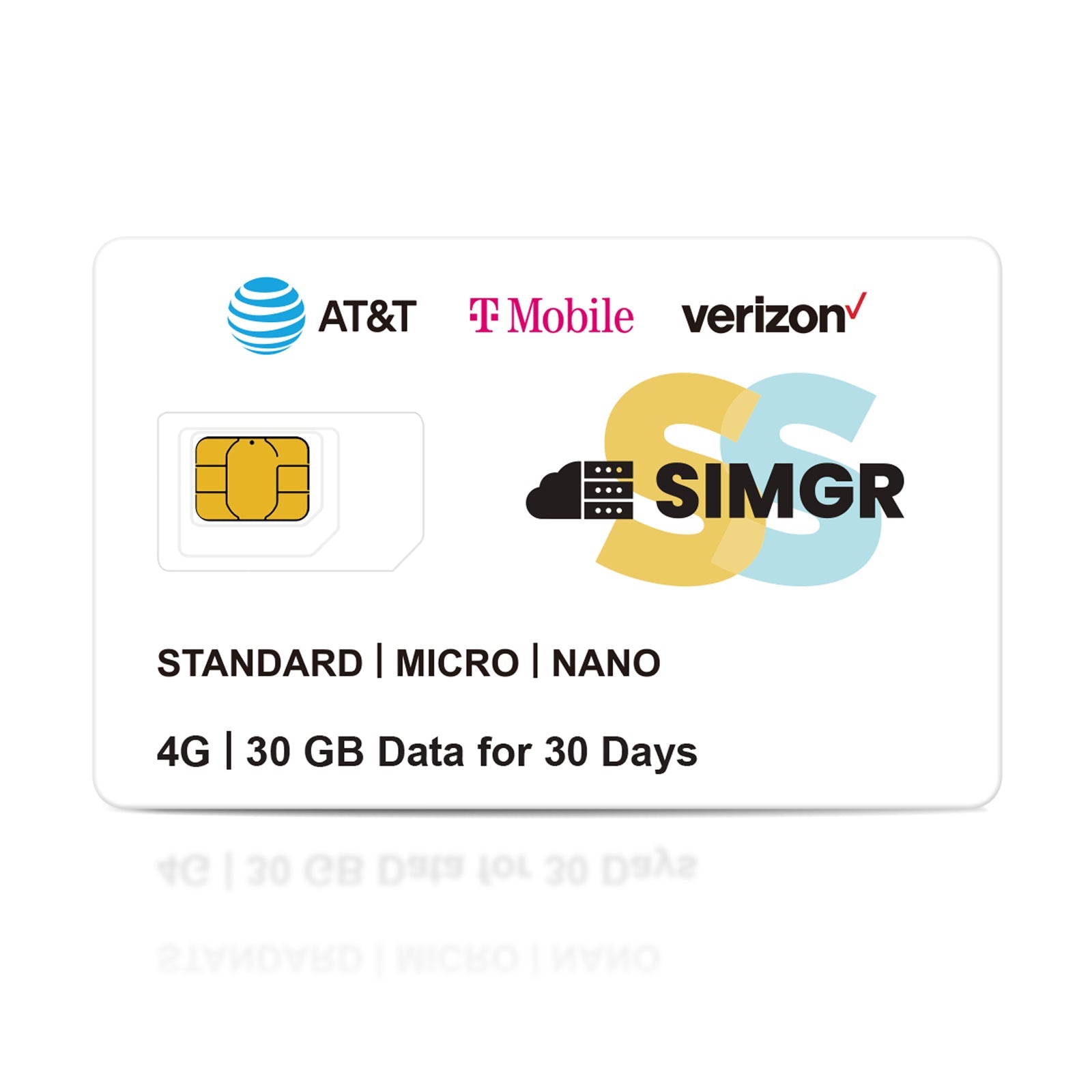 SIMGR Prepaid SIM Card USA Triple-Play Network 4G LTE--Include 30GB for 30 Days
