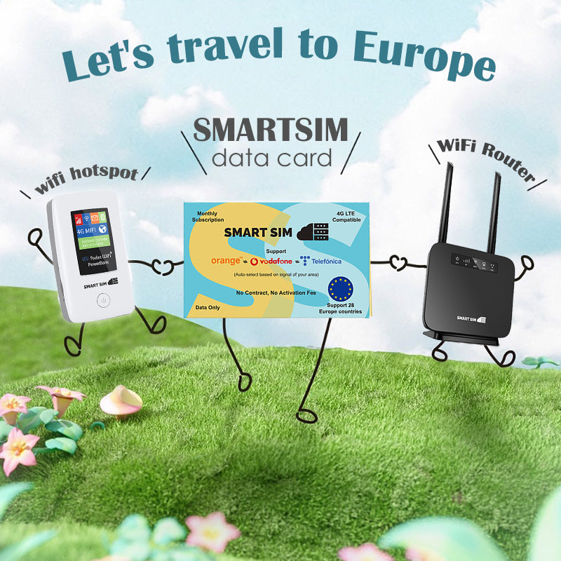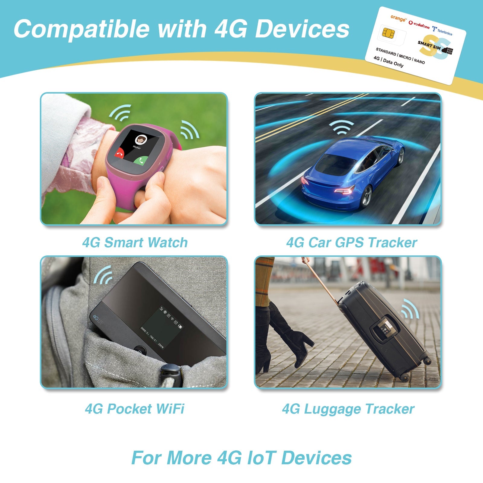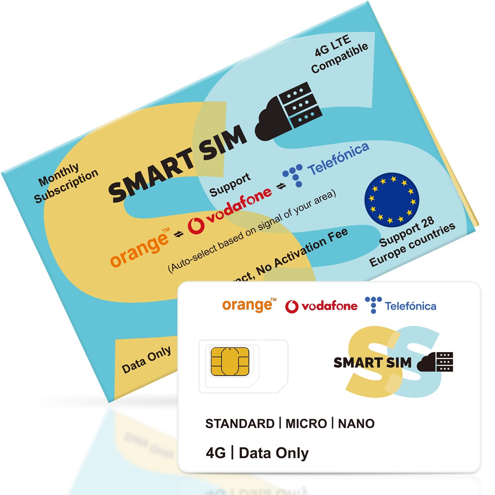 Europe 4G LTE-FREE 100MB-SmartSim Prepaid SIM Card-Support Orange, Vodafone ,Telefonica, Compatible with Unlocked Security Camera/Router/Mobile WiFi Hotspot/GPS Tracker/Tablet IoT Devices