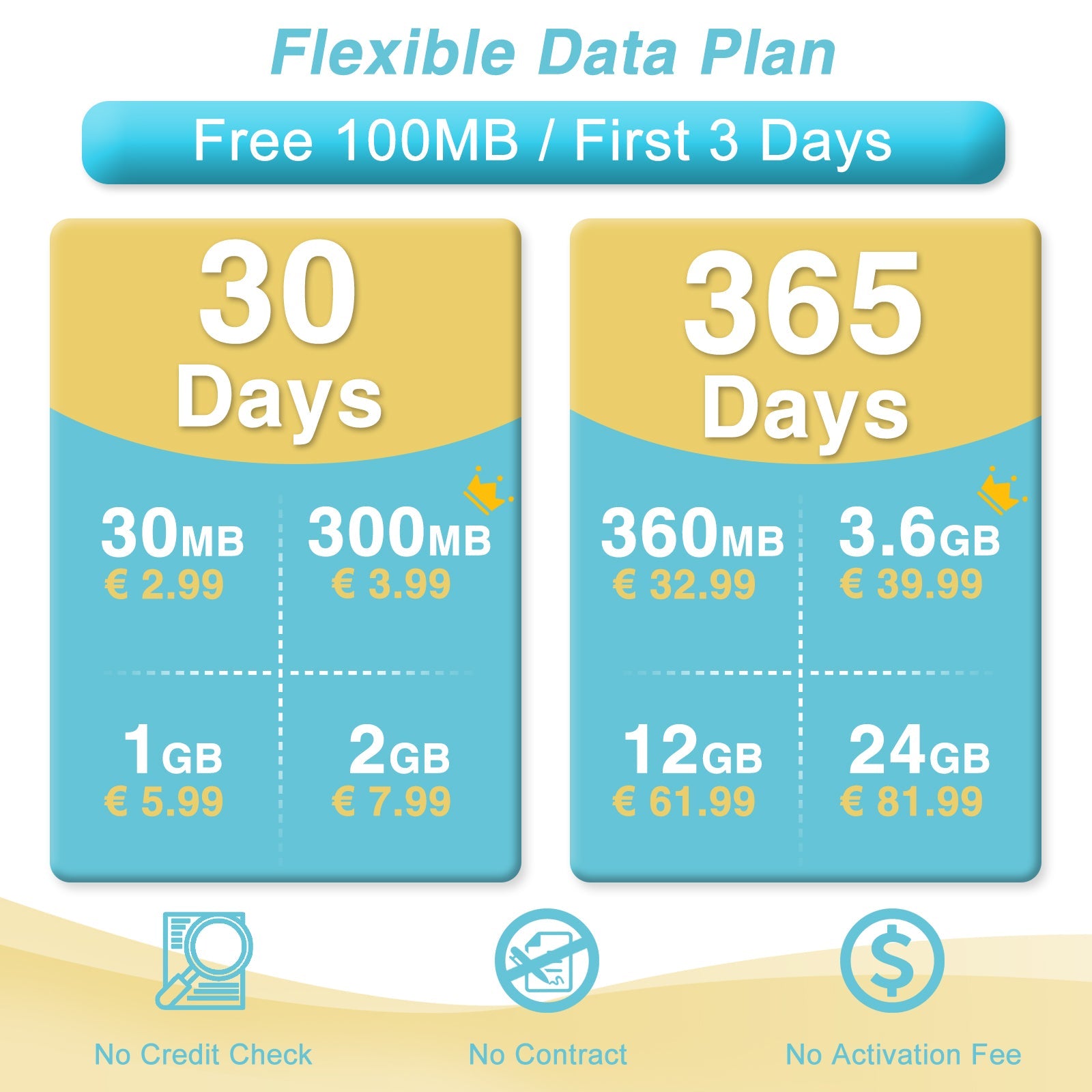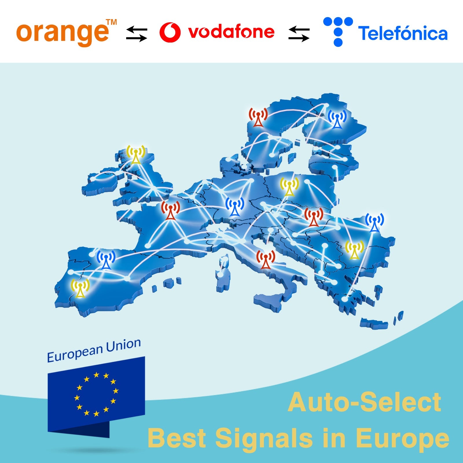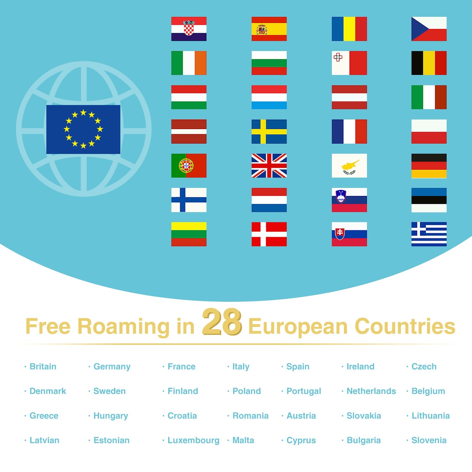 【Whole National 4G Coverage】Forget no signal in your area. This data only SIM card provides high speed 4G LTE network, and auto select Europe top cellular carriers orange&vodafone&Telefonica. Data SIM Card Free Roaming in 28 European countries