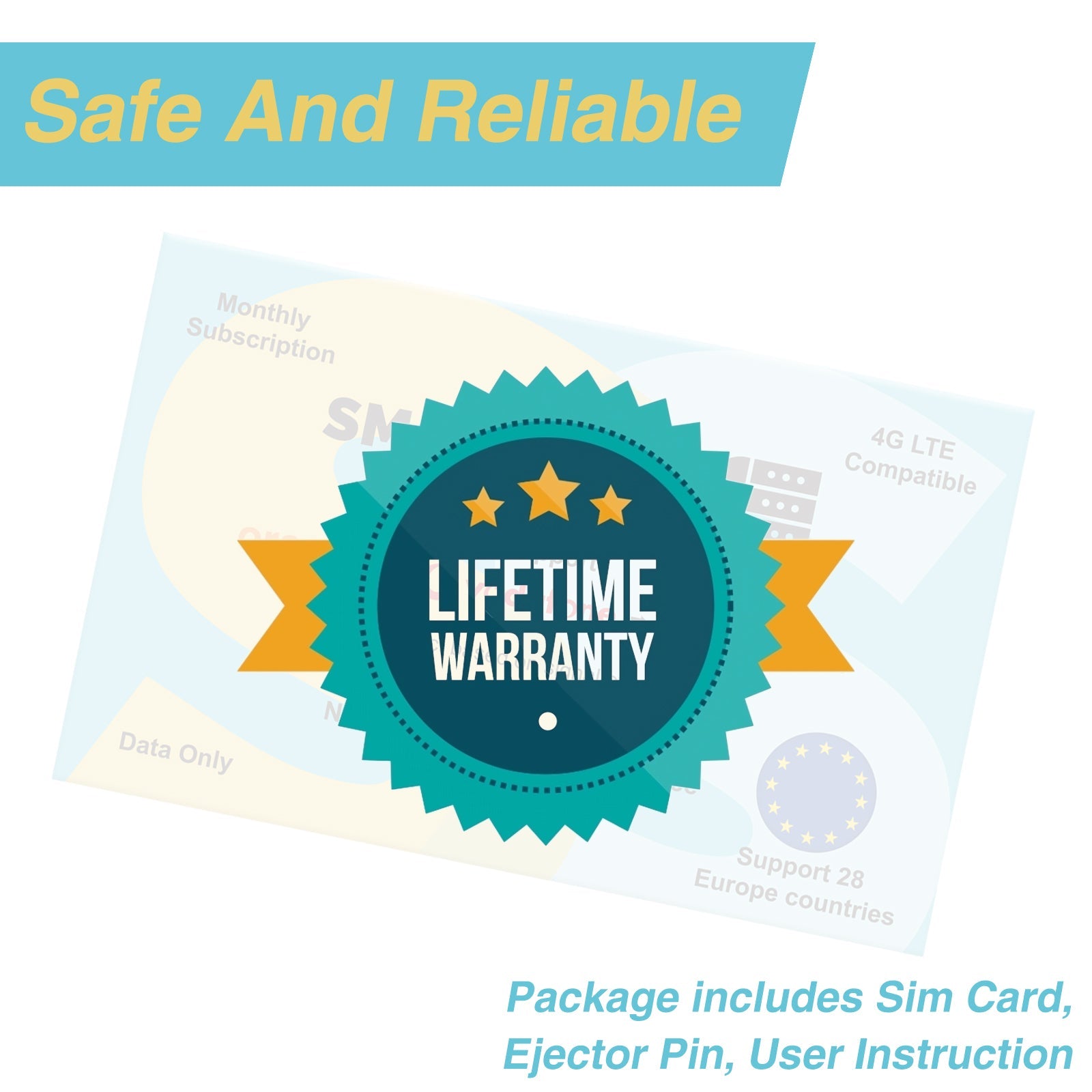 【Lifetime Support】SIMGR 4G prepaid data SIM card comes with 24/7 professional email tech support and a lifetime warranty. If you have any problems with your SIM card’s subscription or cancellation, please feel free to contact us (Email: info@smartsimtech.com )