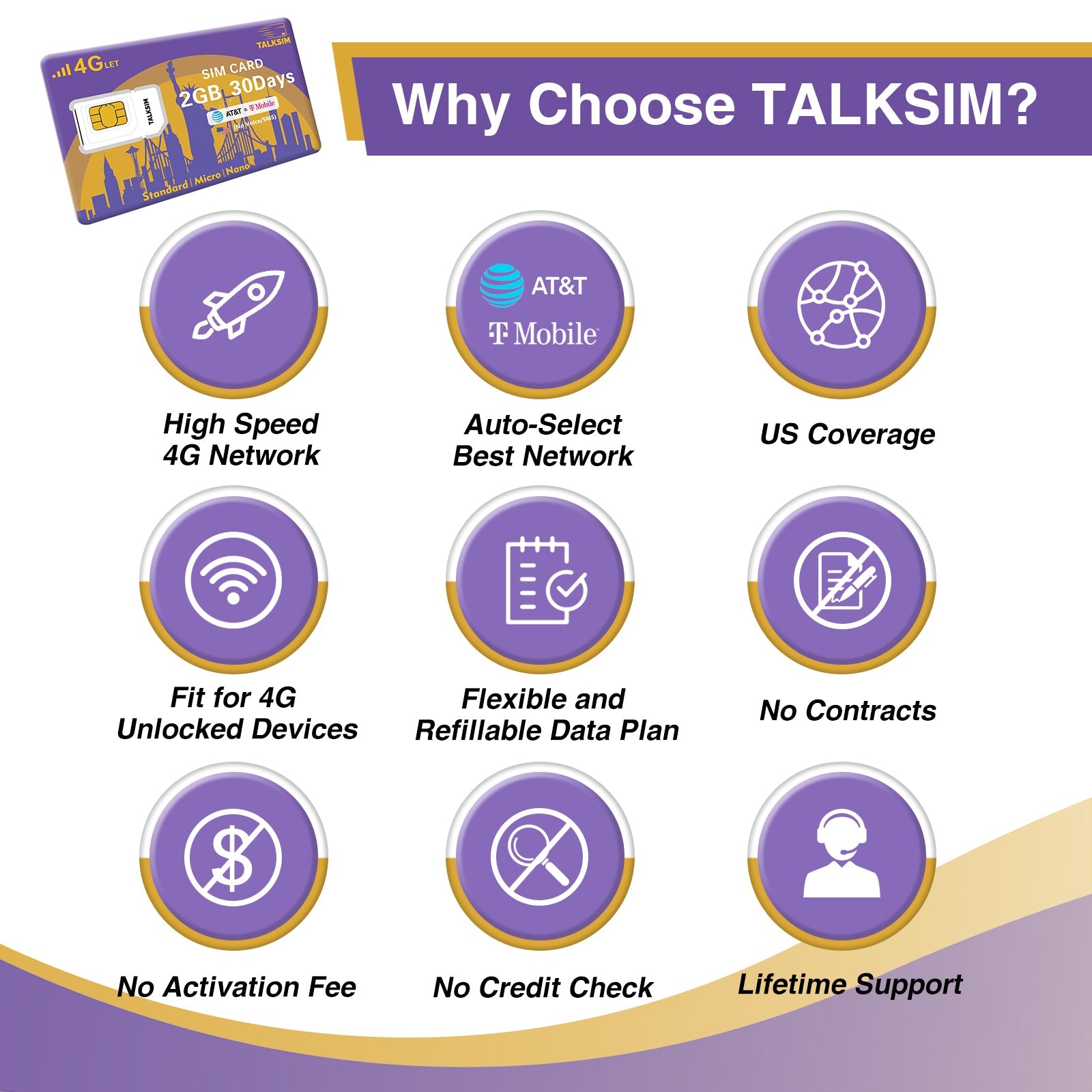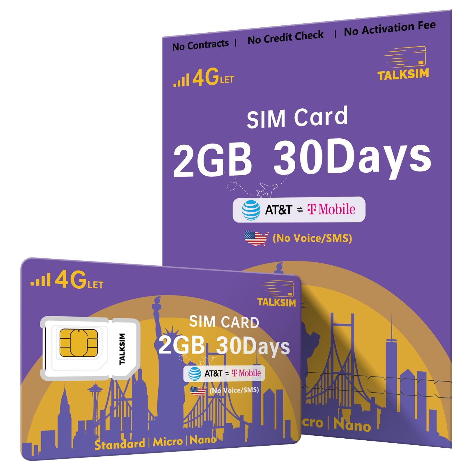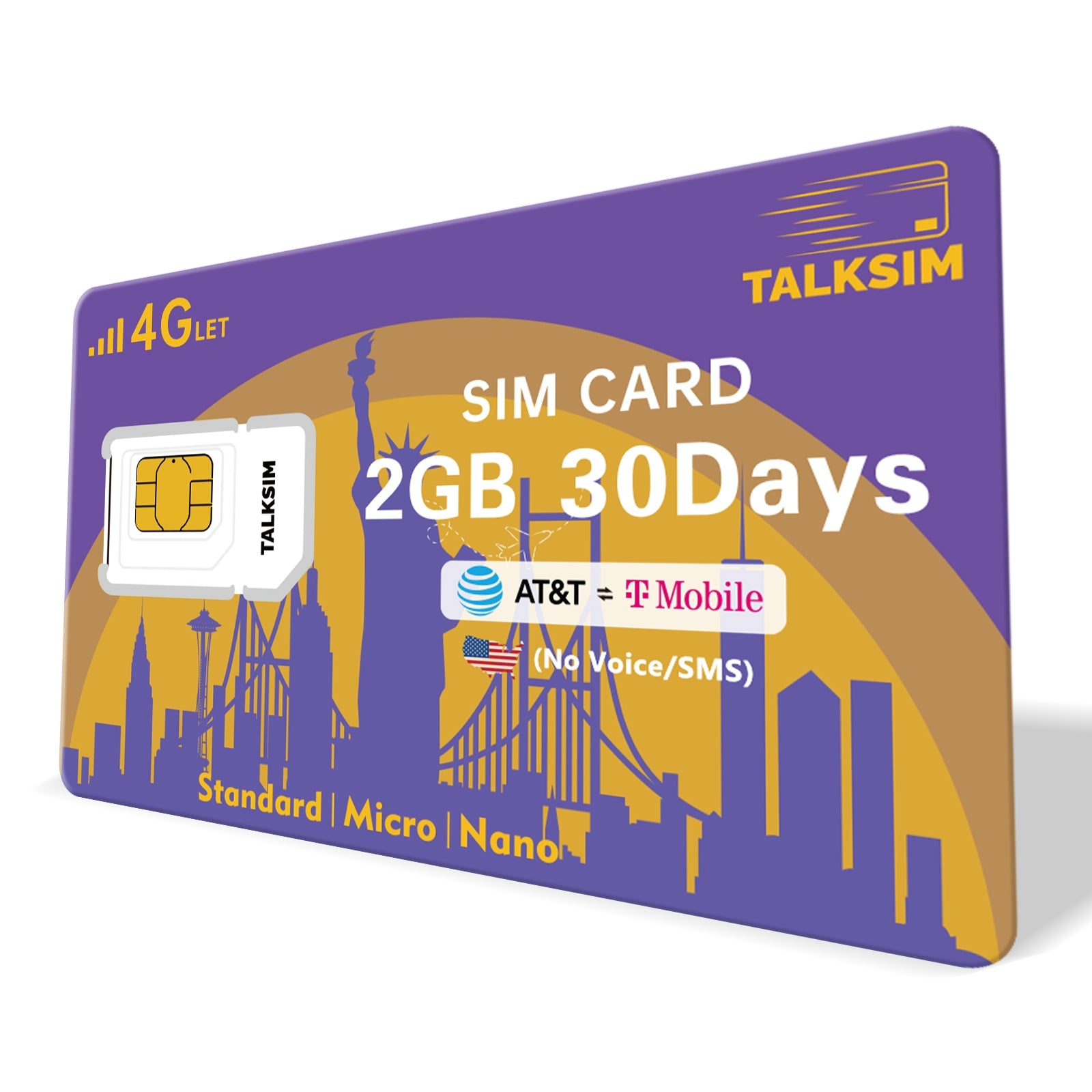 TalkSIM Data SIM Card(2GB 30 Days)USA SIM Card 4G LTE Support AT&T, T-Mobile Dual Network