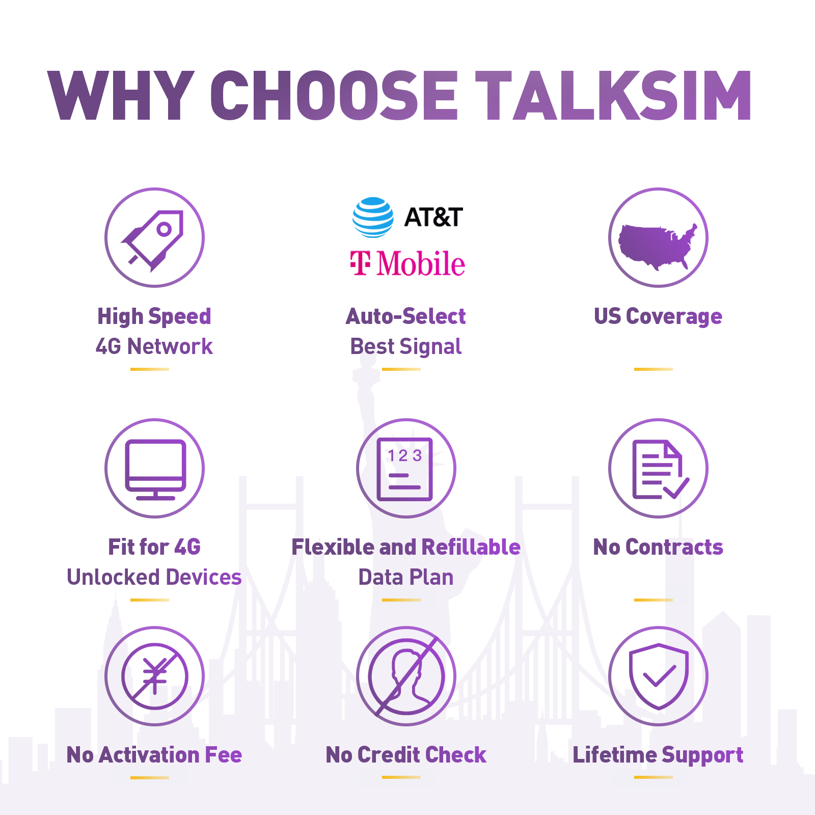 - 【Superior Support】The TALKSIM prepaid SIM card USA offers excellent ongoing assistance. If you have any questions or issues with the US SIM card, please don't hesitate to reach out to us. Our goal is to provide outstanding service to you, which also covers the ICCID number.