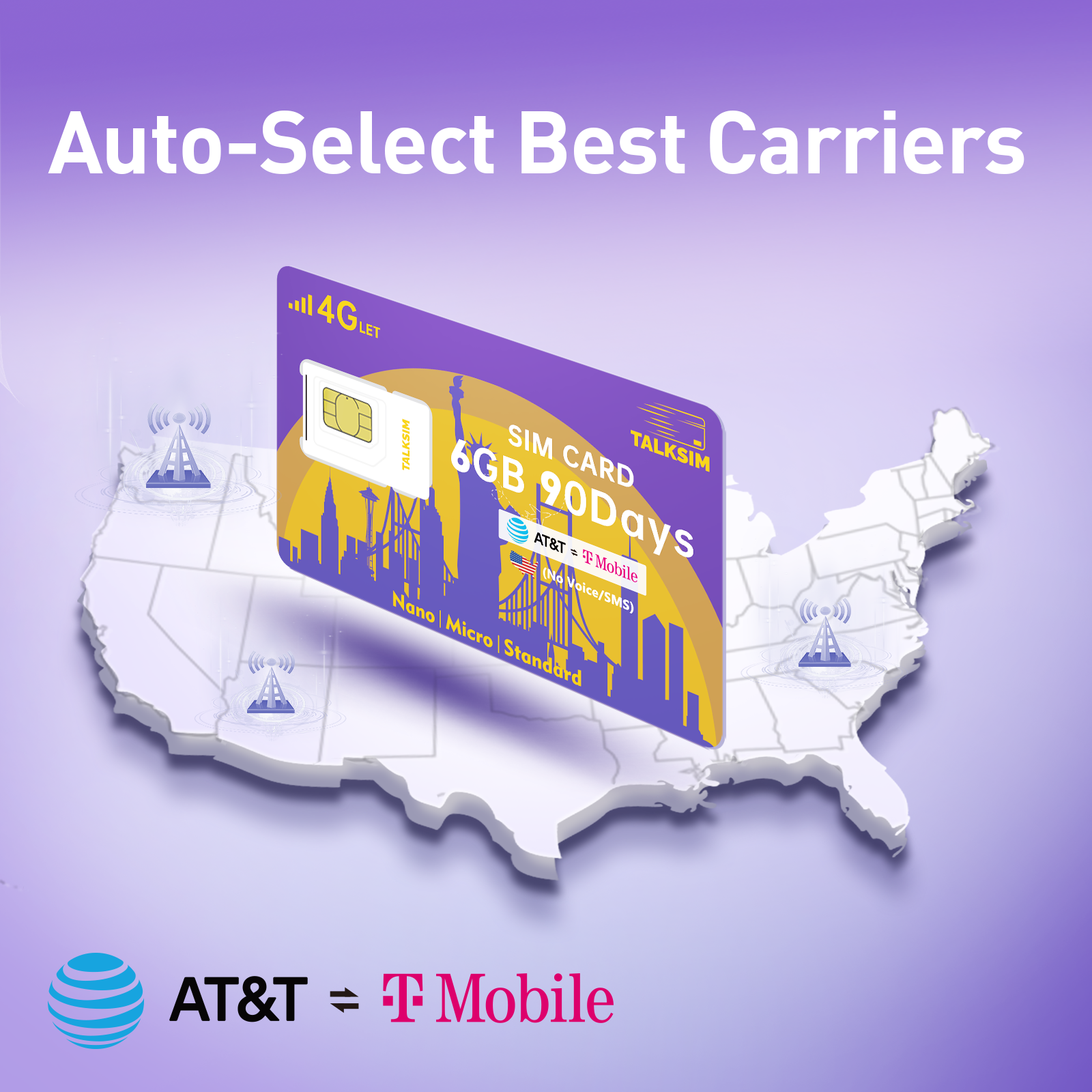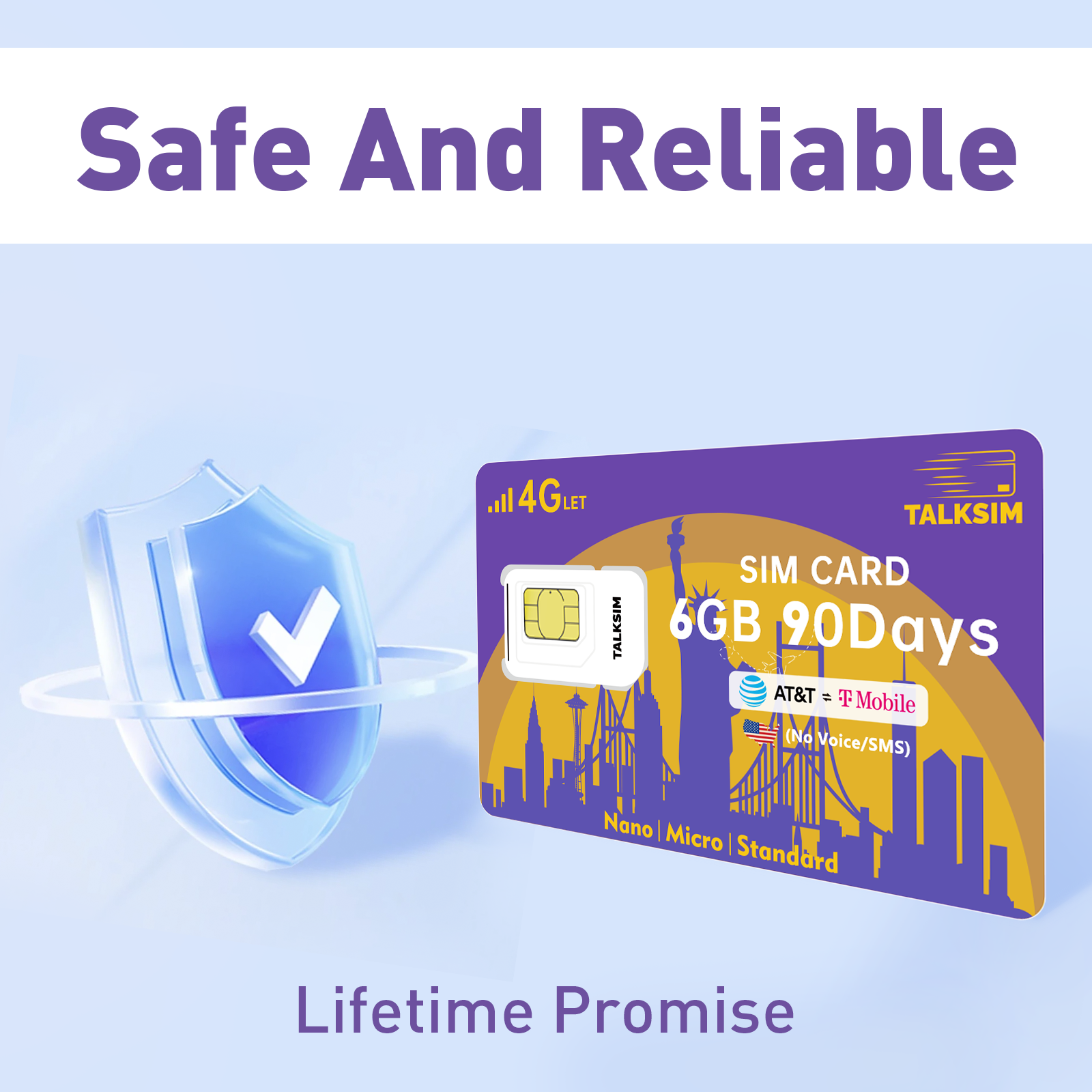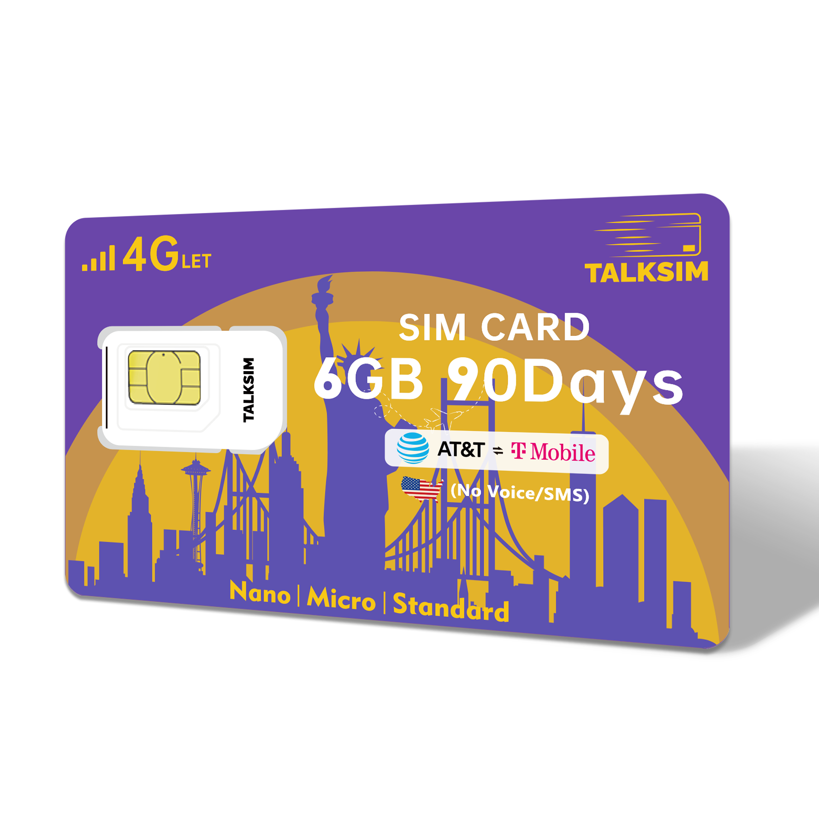 - 【Great 4G Nationwide Coverage】This TALKSIM SIM card provides 6GB of wireless service for 90 days with robust 4G coverage throughout the country. It links to the rapid 4G LTE networks of leading US carriers AT&T and T-Mobile, selecting the most suitable carrier for the best signal strength. This Data only SIM card ensures reliable access to the national data network, ensuring smooth connectivity across the United States.