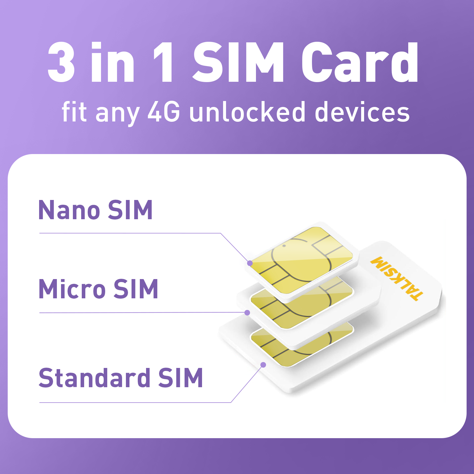 TalkSIM Data SIM Card( 6GB 90 Days)Support AT&T, T-Mobile Networks, 4G LTE USA SIM Card